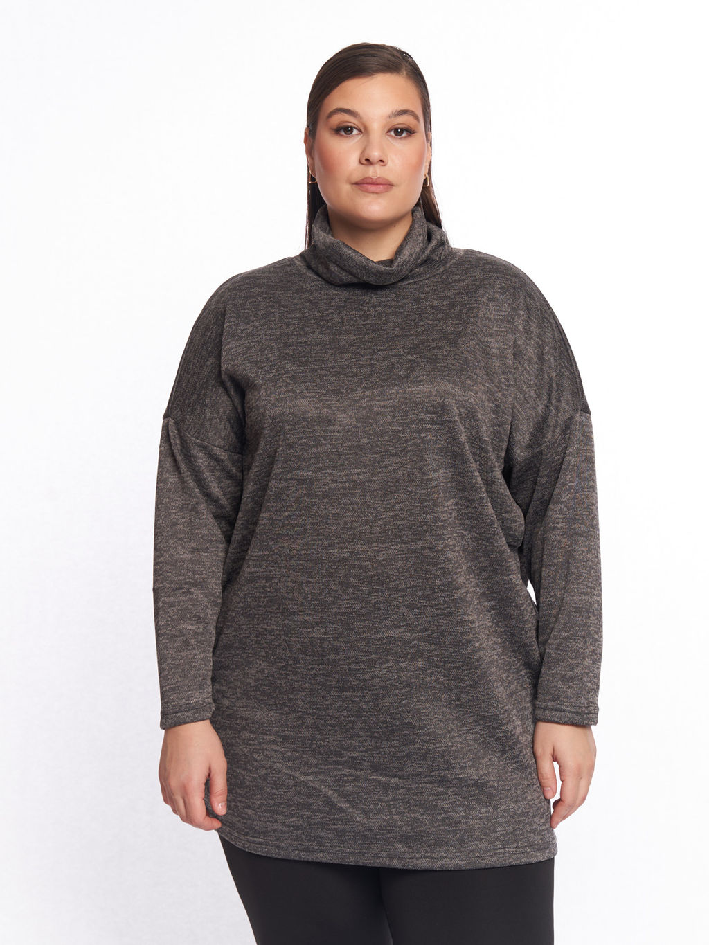 Описание товара Трикотажный джемпер больших размеров с горлом серый