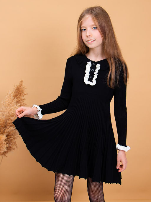 Прекрасное теплое платье для девочки. Мягкий, вязаный трикотаж не сковывает движений, обладает хорошей воздухопроницаемостью и приятно облегает тело. Планка на три пуговицы декорированная рюшей, юбочка-плиссе. Идеальный выбор для красивого образа на каждый день.