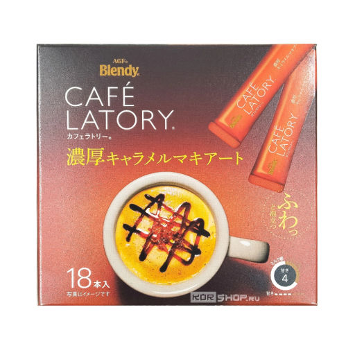 Растворимый кофе Макиато с карамелью в стиках Cafe Latory Blendy AGF это изысканный сливочно-кофейный напиток со сладкой карамелью, расплавленной в густом молоке. Макиато источает манящие карамельно-кофейные ароматы и покоряет своей кремовой бархатистой текстурой. Богатый вкус кофе с оттенками карамели это маленькое волшебство в чашке. Этот восхитительный кофейный десерт обожают во всех кофейнях мира. С помощью сухой растворимой основы Макиато можно приготовить дома, на работе, в поездке или на отдыхе в любом месте, где есть чайник с горячей водой. Нужно лишь растворить содержимое стика в 160 мл горячей воды и размешать. В упаковке 18 порций. Растворимый кофе Макиато с карамелью от крупного японского производителя AGF отличается идеально сбалансированной вкусовой гаммой и умеренным уровнем сладости.