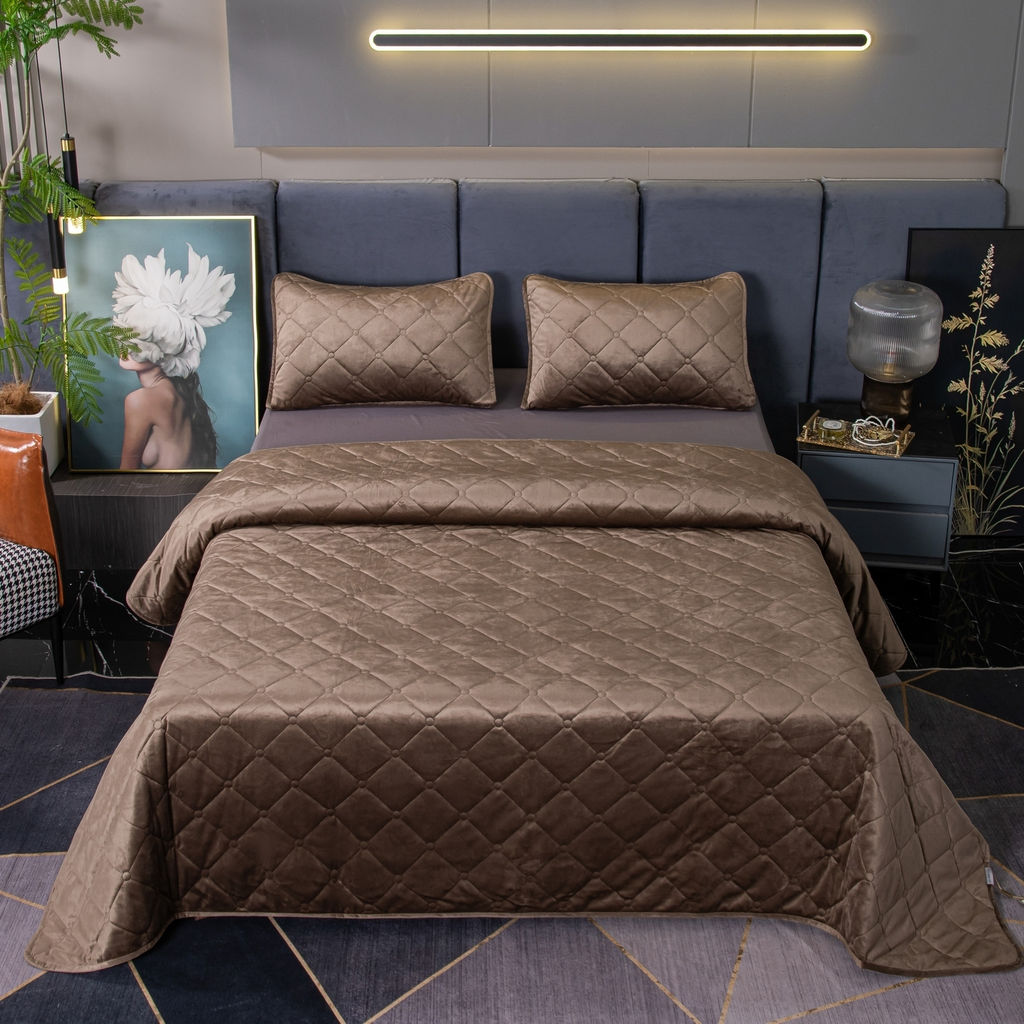 Велюровое покрывало с ромбовидной стежкой: мягкая текстура велюра и приятная цветовая гамма станут прекрасным дополнением интерьера вашей спальни. Кровать с таким покрывалом будет выглядеть стильно и дорого.