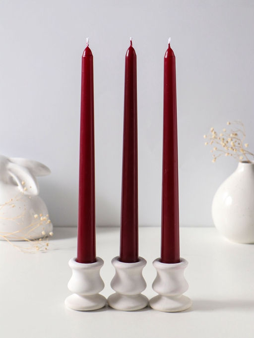 • Свеча античная 25 см (набор 3 шт) 58 гр, 7 ч, цв. бордовый