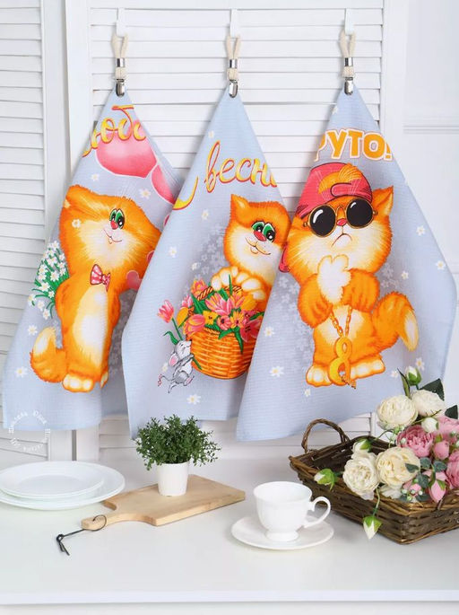 Артикул: Комплект вафельных полотенец 48*60 см, 3 штуки (Обнимяу)