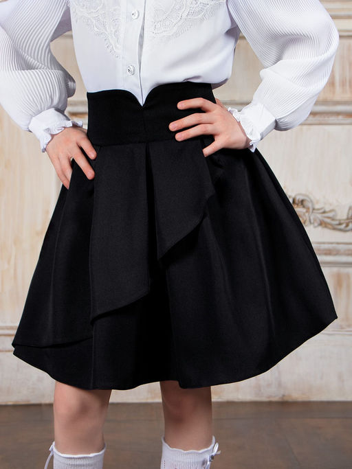 Шикарная, пышная юбка - полусолнце, с широким поясом, ненавязчивым декором и съёмным подъюбником на пуговицах, для девочки. Идеально сочетается с любой блузкой. Прекрасный выбор для интересного школьного образа.