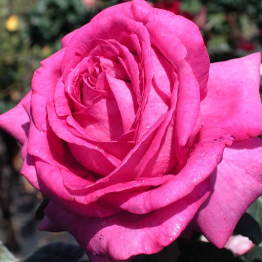Чайно-гибридная. Цветок по окраске бутона тёмно-сиреневого цвета, основной окрас лилово-розовый, приближенный к чисто-розовому. Очертания бутона отдалённо напоминают яйцо, раскрывшийся цветок принимает чашеобразную форму, при этом центр раскрытого бутона приподнят. Размер цветка укрупнённый раскрытый бутон, диаметр которого достигает 9-10см. Цветок по численности лепестков (их 40-55) относится к особо махровым. Цветки располагаются поодиночке или в соцветиях. Количество бутонов в соцветиях достигает 5. По запаху цветки выдают мандариновый, гиацинтовый, сиреневый, а также оттенки манго, мелиссы и личи, запах расценивается как интенсивный. Кустовые характеристики: культура эта прямостоячая, высотой до 1м, шириной до 60см, с ярко-зелёной листвой. Текстура поверхности листа матовая, по размеру листья относятся к средним, типичным для целого ряда сортов роз.