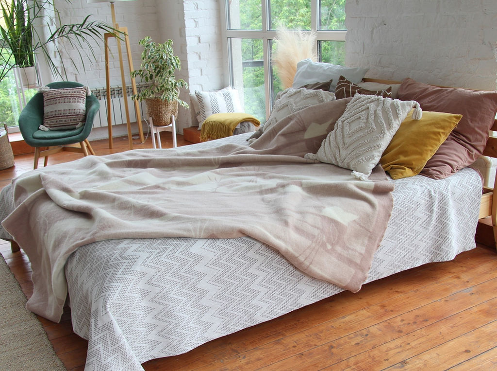 • Одеяло шерсть мериноса 100% 180*205 "Кошки" цв бежевый (Узбекистан)