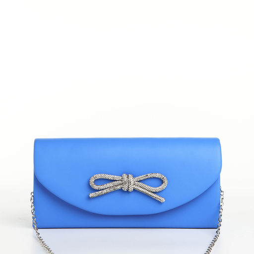 • Сумка-клатч женская вечерняя на магните, на длинной цепочке, с декоративным бантом, синяя