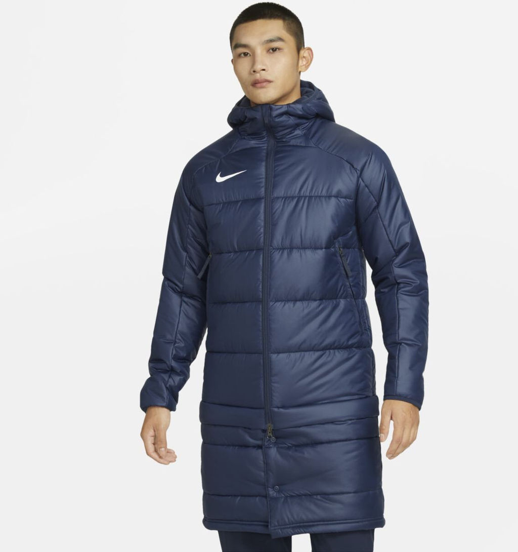 Спортивная куртка Nike. Длинный крой и застежка-молния. Технология Therma-FIT характеризуется использованием специальных материалов, которые благодаря микроскопическому переплетению волокон образуют многослойную структуру, обеспечивающую теплоизоляцию. Это предотвращает проникновение холода и ветра в одежду.