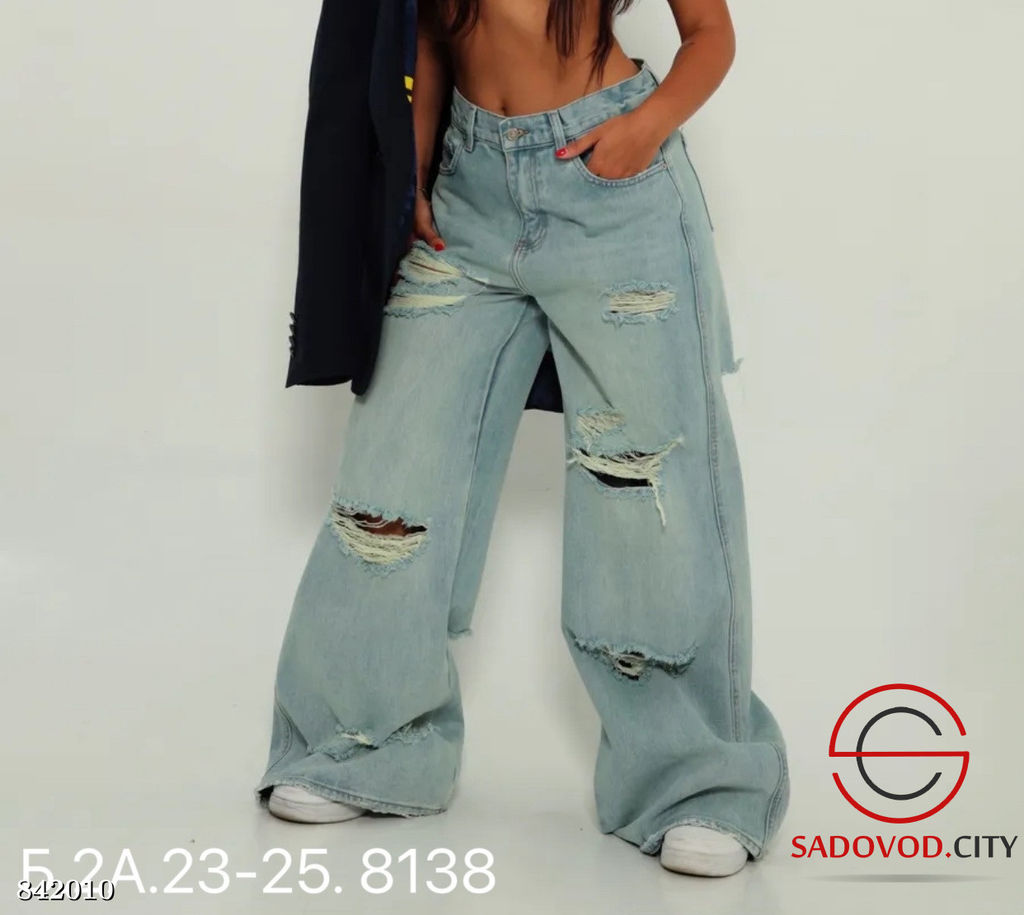 • Джинсы широкие с рваным эффектом