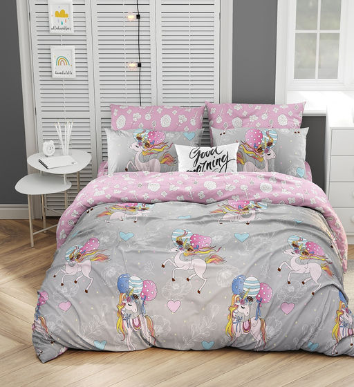 • Постельное белье детское поплин на молнии - Единороги 1,5 сп. (1 нав.70x70)