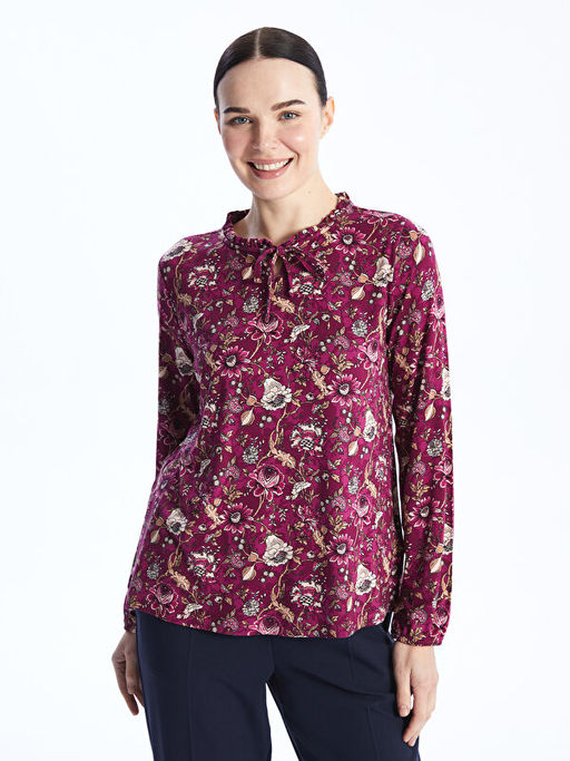 Ba?lamal? Yaka Desenli Uzun Kollu Kad?n Bluz