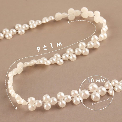 Жемчуг на нитях, плоский, 10 мм, 9±1 м, белый