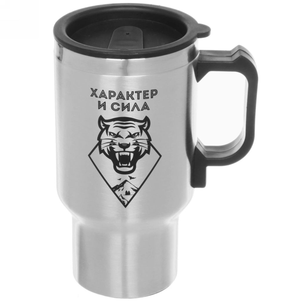 • Термокружка 450мл, с подогревом от прикуривателя "Характер и Сила" Тигр Серп и молот
