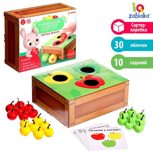 Развивающий набор «Цветные яблочки» поможет малышу научиться сортировать предметы по цветам. А комплект умных карточек сделает игровой процесс ещё более интересным и занимательным!Как пользоваться набором?Разложите все фрукты перед малышом и расскажите, какого они цвета.Попросите кроху опустить яблочки в отверстия нужного цвета.Выполняйте задания на карточках вместе с малышом.Используйте коробку для сортировки любых других предметов. Она выполнена из картона и может служить отличным местом для хранения мелких вещей малыша.В комплекте есть 30 яблочек, коробка-сортер и 10 логических заданий.Для детей старше 3 лет. Возраст: От 3 лет. Тематика праздника: Новый год. Развитие навыков: Счёт. Развитие навыков: Логика. Развитие навыков: Фигуры, цвета. Развитие навыков: Моторика. Бесплатная доставка: Да. Наша разработка: Да. Размеры товара: 16/8/20.