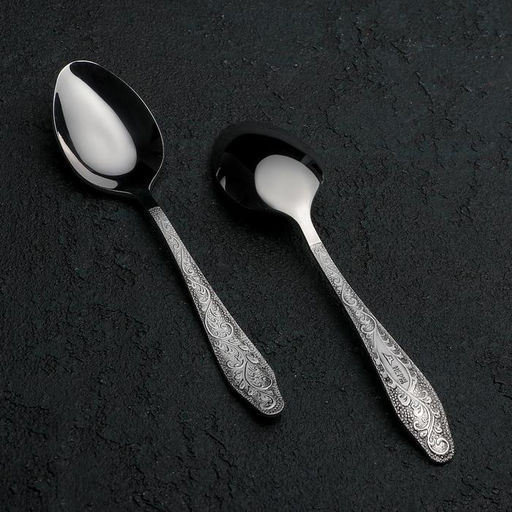Цена за 6 шт. Ложка чайная «Дубрава», толщина 2 мм, цвет серебряный