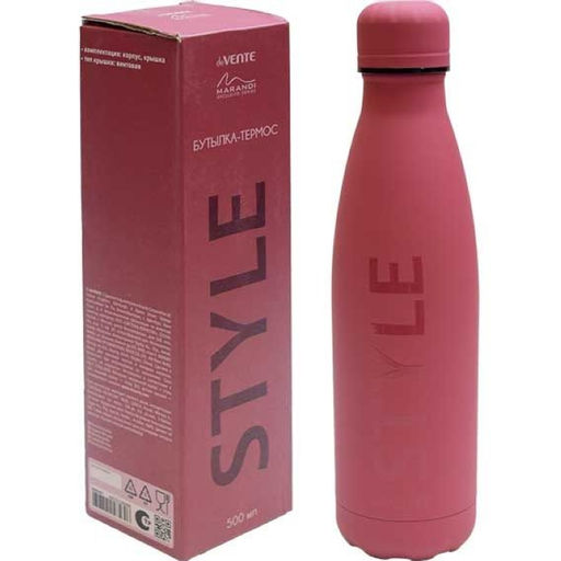 • Бутылка-термос "Marandi" 500 мл, 26,3x7,6x7,6 см, 8-12 часов, нержавеющая сталь, с герметичной крышкой-пробкой, матовая, бордовая, лакированная надпись STYLE