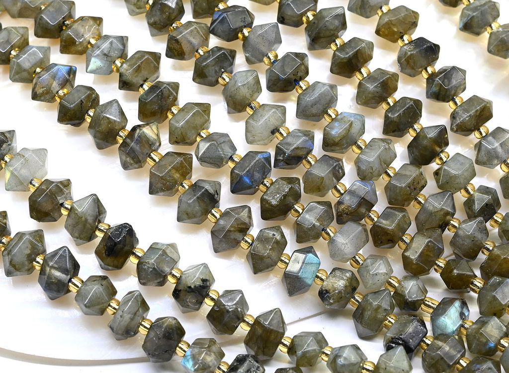 Бусины из лабрадора многогранник 7*10мм, 37см, 47 бусин Радуга камня