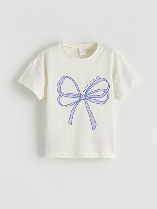 Bisiklet Yaka Bask?l? K?z ?ocuk Ti??rt