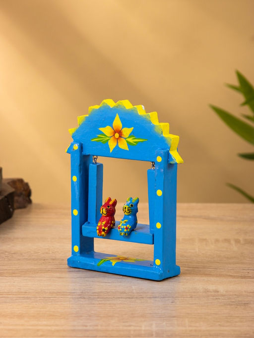 • Сувенир Зайки на качелях, 11?5.4?14.4 см, дерево, синий