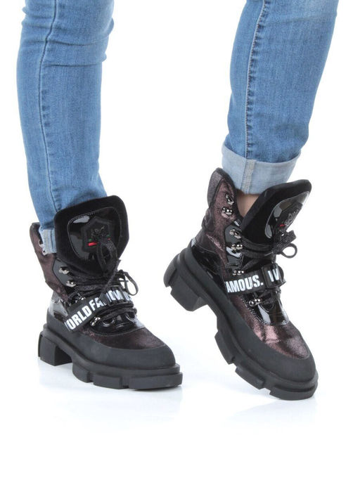 • 01-H016-362-Y197Q/Q28K GUN/BLACK Ботинки демисезонные женские (натуральная кожа, байка)