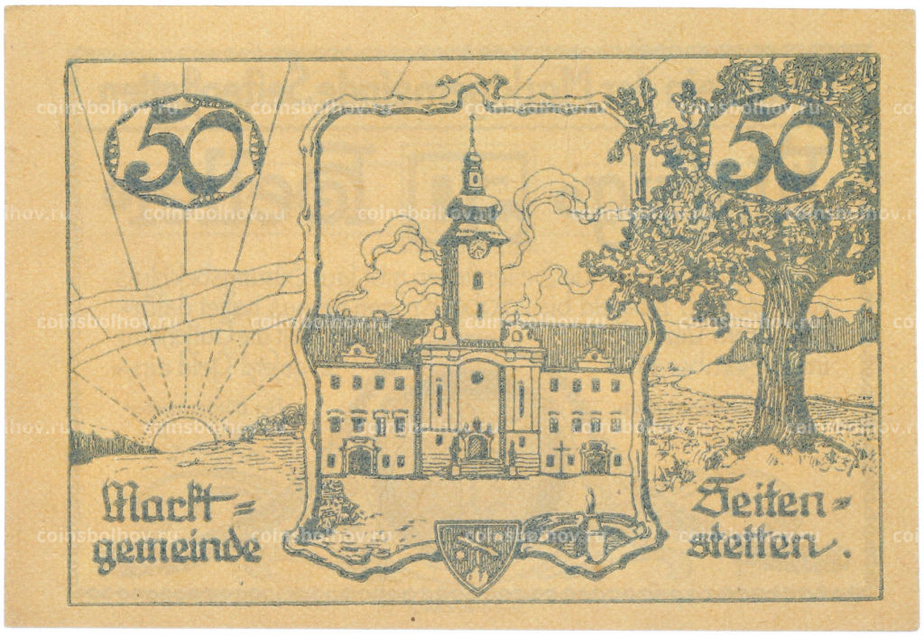 Банкнота 50 геллеров 1920 года Австрия торговая община Зайтенштеттен (Нотгельд)