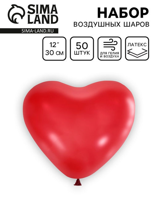 Воздушные шары латексные 12" Сердце, 50 шт.