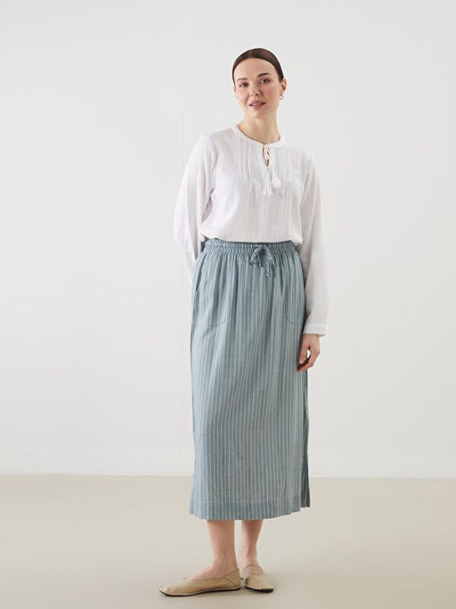 • Beli Lastikli ?izgili Keten Kar???ml? Etek