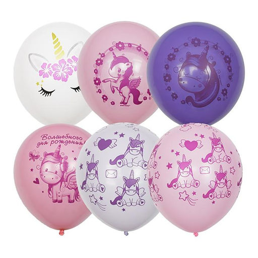 • Шар латексный 12" «Единорог, день рождения», пастель+декоратор, набор 10 шт., МИКС
