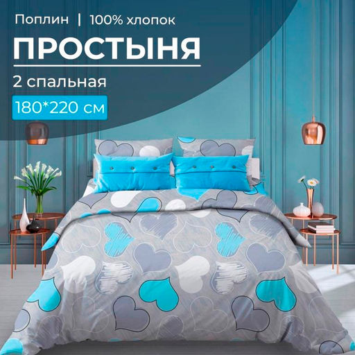 Артикул: Простыня 2-спальная, поплин (Романтика, голубой)