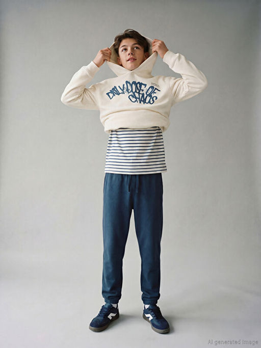 • Kap??onlu Bask?l? Erkek ?ocuk Sweatshirt ve E?ofman Alt?