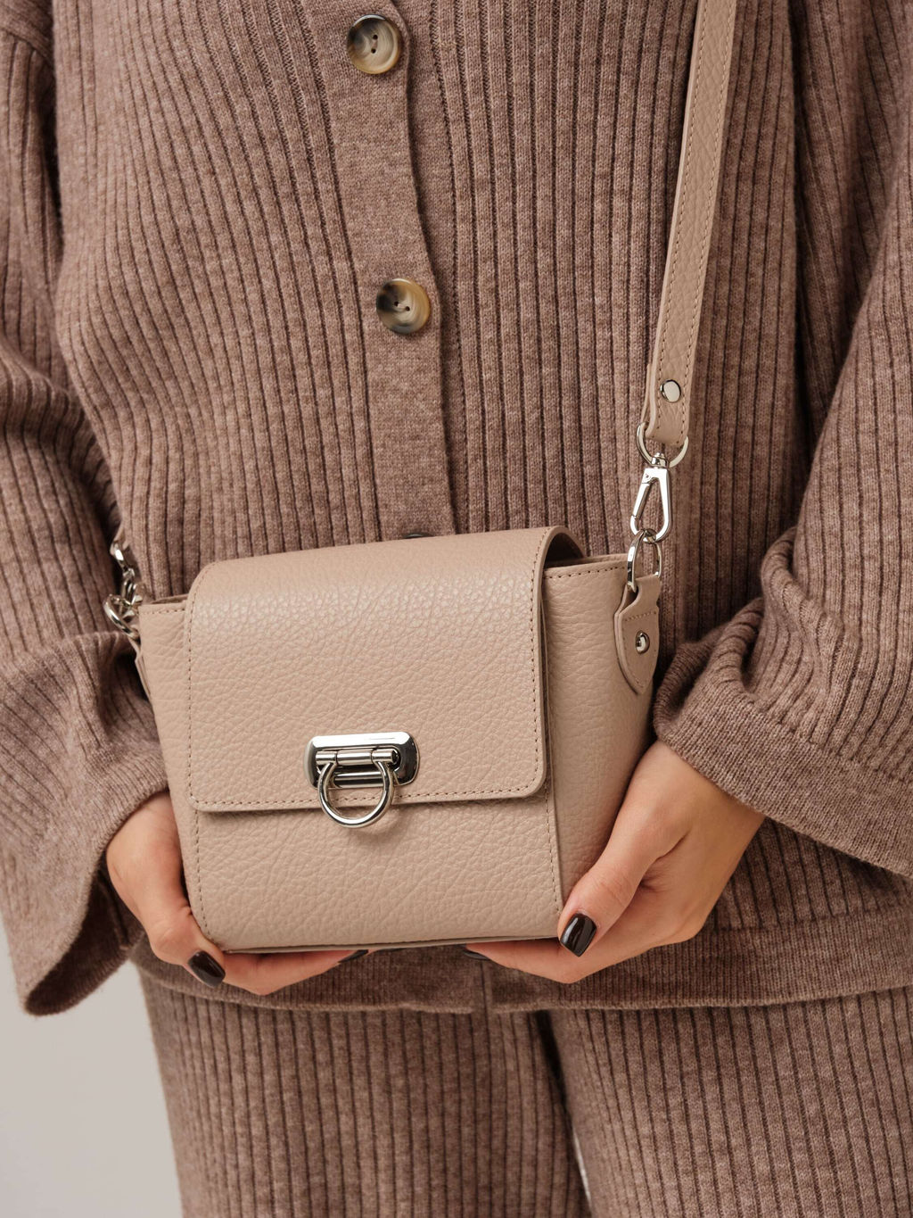 Женская кожаная сумка кросс-боди Azaro розово-бежевый/бизон - стильный акцент для тех, кто ценит лаконичность и качество. Детали: натуральная кожа, внутренняя отделка клапана из натуральной замши, съемный регулируемый ремень, 1 внутреннее отделение, 2 внутренних кармана - на молнии и открытый, застежка на молнию и замок-вертушку. Выполненная из натуральной кожи, эта сумка кроссбоди обладает выразительной текстурой и безупречным исполнением. Розово-бежевый оттенок придаёт образу утончённость и элегантность. Этот цвет хорошо сочетается с разыми образами, делая сумку универсальной деталью гардероба. Компактная форма и функциональный дизайн обеспечивают комфорт в повседневном использовании, а металлическая фурнитура в серебристом тоне добавляет современного шика. Сумка станет стильным завершением образа и подчеркнёт безупречный вкус своей обладательницы. -- Характеристики -- Тип товара: Женские сумки Цвет: розово-бежевый Материал: Натуральная кожа Бренд: Azaro Тип: Сумка через плечо Страна-изготовитель: Россия Высота, см: 14 Ширина, см: 21 Глубина, см: 10 Материал подкладки: Хлопок Количество внутренних отделений: 1 Тип застежки: Молния Формат А4: не вмещает Длина плечевого ремня, см: 114 Ручки: Плечевой ремень Пол: женская коллекция Группа товара: Сумки