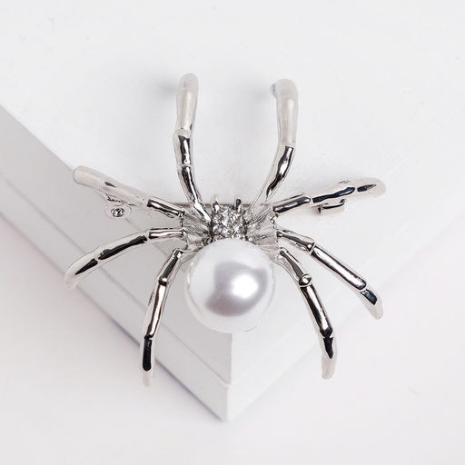 • Цена за 2 шт. Брошь «Паук» жемчужинка, цвет белый в серебре