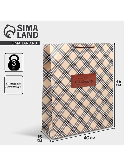 • Пакет подарочный ламинированный, упаковка, Настоящему мужчине, XL, 40?49?15 см