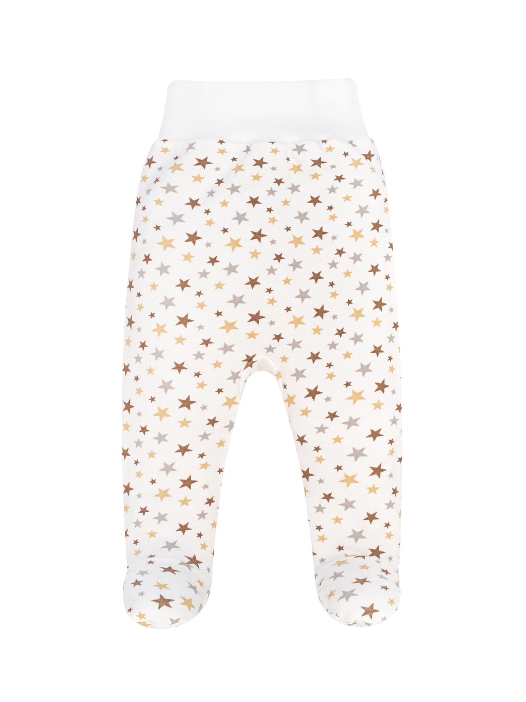 Мягкий, износостойкий, лёгкий, плотный, приятный к телу трикотаж. Короткие ползунки с закрытой ножкой. Пояс на трикотажной еврорезинке. Выпускаются из трикотажа молочного цвета с рисунком бежевые звезды.