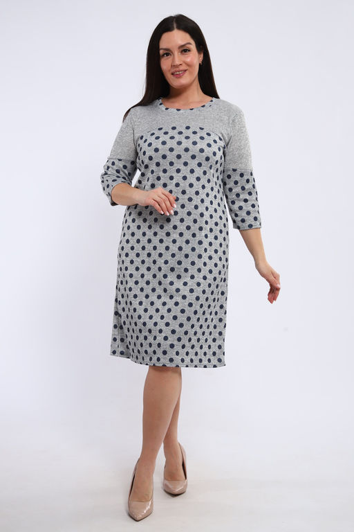 Универсальное сочетание тканей: Платье выполнено в модном сочетании гороха и однотона, что позволяет варьировать аксессуары и образы. Уникальный принт в горошек добавляет игривости и легкости, а однотонные элементы обеспечивают стильный контраст.