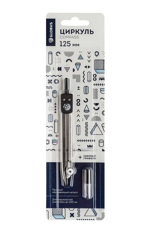 Набор чертежный (готовальня) GLOBUS ЮНИОР циркуль 125 мм металлический черный, 2 предмета,...
