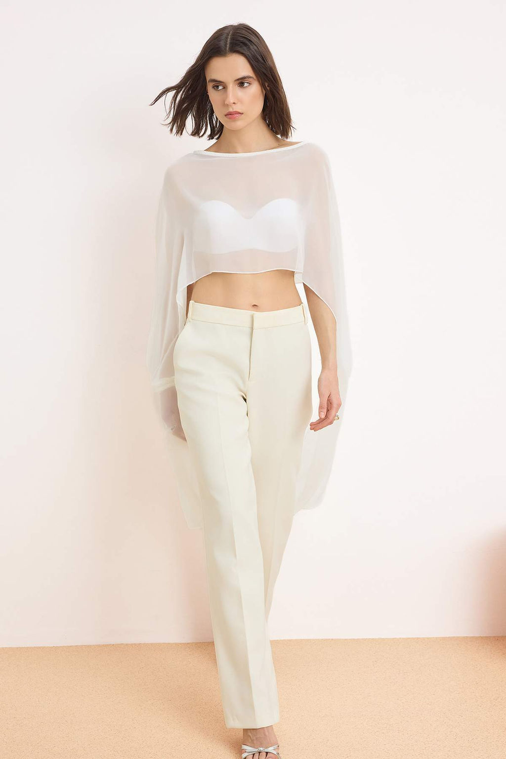 Beyaz Duz Kay?k Yaka Kolsuz Dokuma Sifon Party Bluz TPRSS26BZ00055