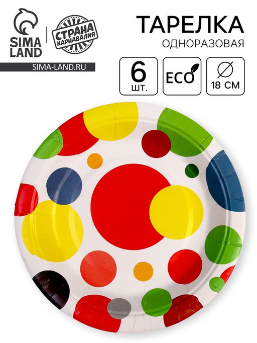 • Цена за 3 шт. Тарелка бумажная «Яркий праздник», 18 см, набор 6 шт.