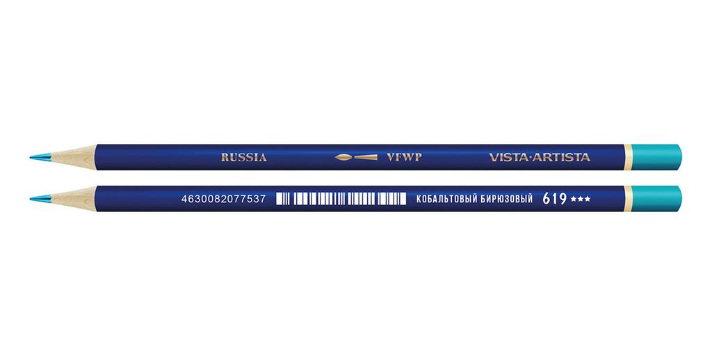 VISTA-ARTISTA Fine VFWP Акварельный карандаш заточенный 6 шт. 619 Кобальтовый бирюзовый (Cobalt turquoise)
