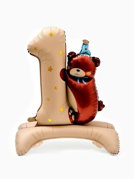 Цена за 2 шт. Воздушный шар фольгированный 32" "Цифра 1 с мишкой" цвет бежевый, под воздух