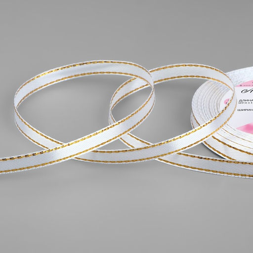 • Цена за 3 шт. Лента атласная, с золотым люрексом, 6 мм, 23±1 м, белая №001