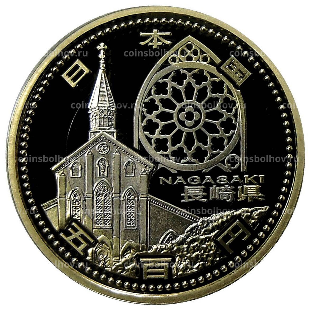 Монета 500 йен 2015 года Япония 47 префектур Японии Нагасаки (в коробке)