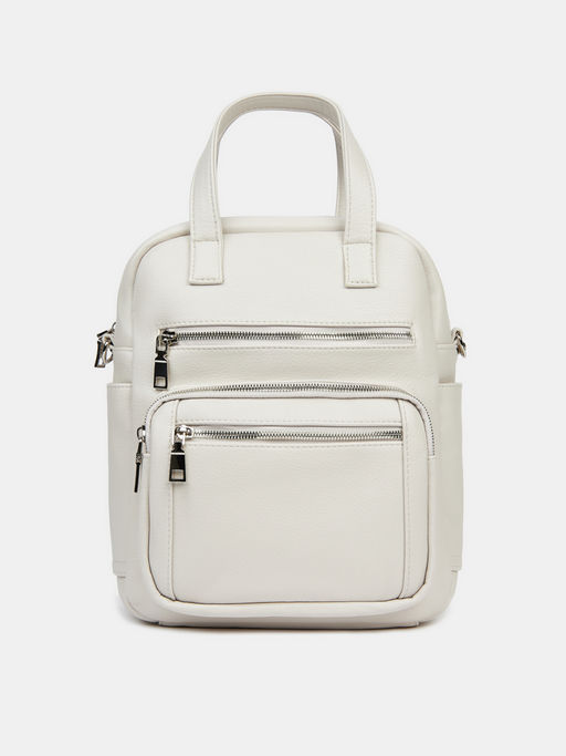 Сумка женская из искусственной кожи бежевого цвета с зернистой фактурой. Основное отделение на молнии позаботится о вещах, несколько внутренних и внешних карманов удобны для карт и документов. Продуманная система хранения удобна и практична на каждый день. Две короткие ручки удобны, чтобы носить сумку в руках. Длинный съемный ремешок на карабинах позволяет носить модель на плече. Бежевая сумка сэтчел дополнит повседневные образы с комфортной одеждой в стиле casual.