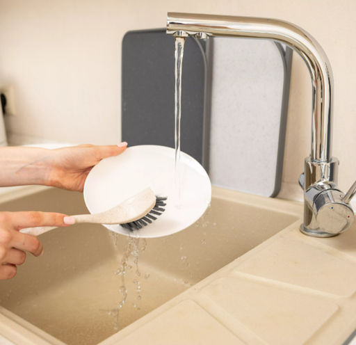 Щетка для посуды SMART изготовлена из переработанного полипропилена с добавлением древесной фракции, обладает тонким древесным ароматом.