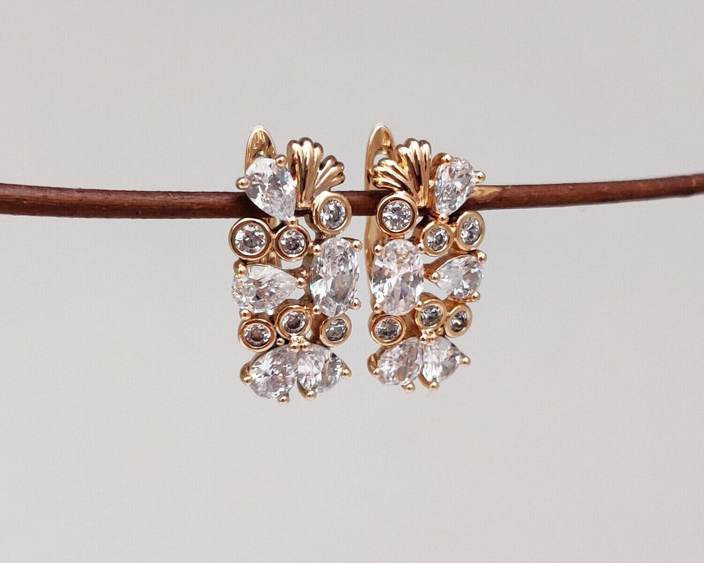 Красивые серьги с благородными цирконами изготовлены из специального гипоаллергенного ювелирного сплава­