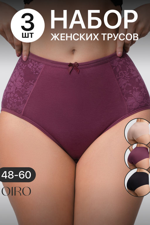 Набор трусов OIRO 3905 хлопковые с цветочным узором 3 шт
