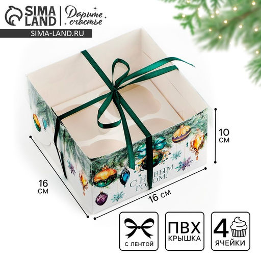 • Цена за 5 шт. Коробка для капкейка «Еловые новогодние веточки», 16×16×10 см