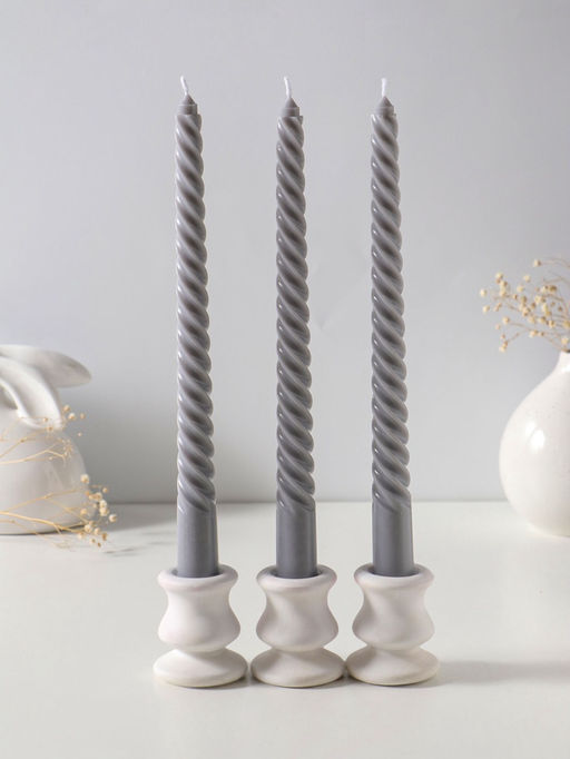 • Свеча витая 25 см (набор 3 шт) 57 гр, 5 ч, цв. серый