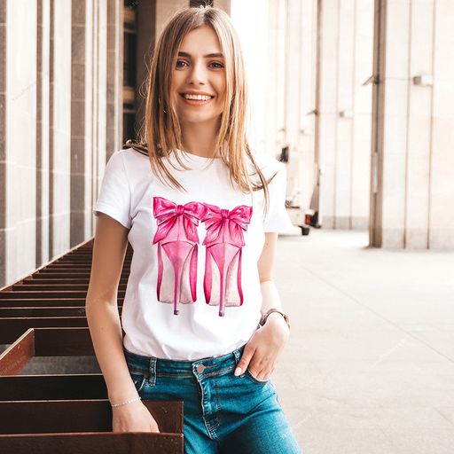 Наши футболки защищены от копий, розовым, слегка заметным кристаллом Swarovski на логотипе.