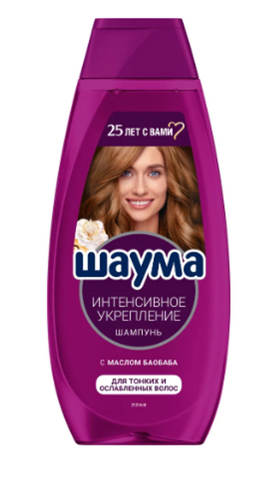 ШАУМА 370 мл Интенсивное Укрепление для тонких и ослабленных волос. Укрепляет волосы. Защищает от ломкости. Веган формула* с биотином и маслом баобаба, без силиконов и парабенов. Не содержит ингредиентов животного происхождения.