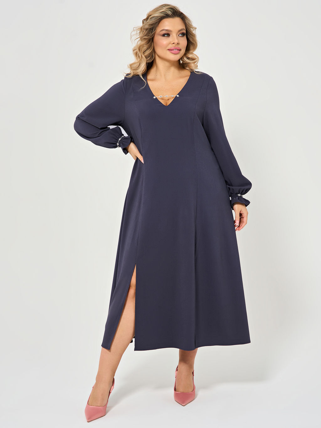 - V-образный вырез горловины с пришивным украшением